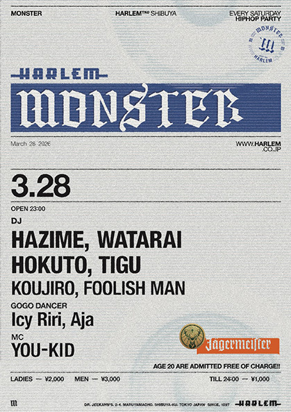 OPEN 22:00 LADIES ¥2,000 MEN ¥3,000