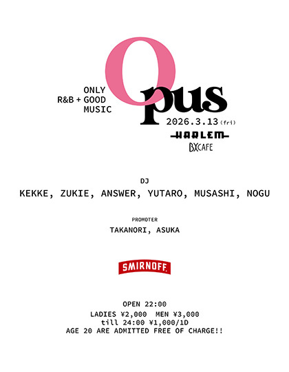 OPEN 22:00 LADIES ¥2,000 MEN ¥3,000