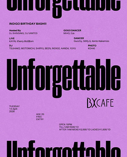 OPEN 22:00 LADIES ¥1,000/1D MEN ¥3,000/1D