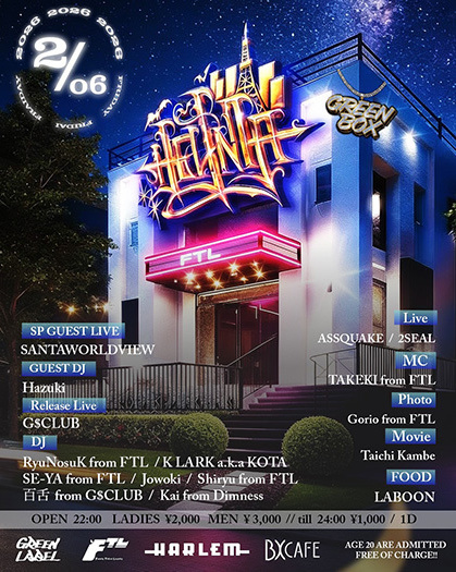 DJ: RyuNosuk from FTL, K LARK a.k.a. KOTA, SE-YA from FTL, Jowoki, Shiryu from FTL, 百舌 from G$ CLUB, Kai from Dimness