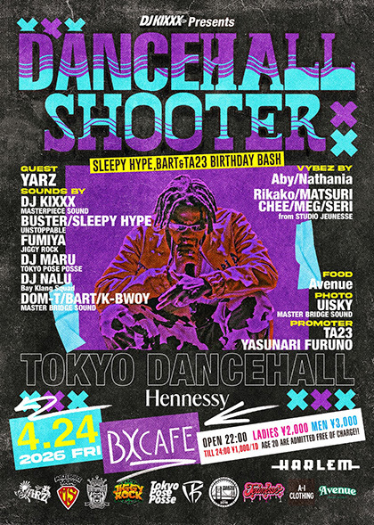MUSIC: DJ KIXXX (MASTERPIECE SOUND), BUSTER/SLEEPY HYPE (UNSTOPPABLE), FUMIYA (JIGGY ROCK), DJ MARU (TOKYO POSE POSSE), DJ NALU (BAY KLANG SQUAD), DOM-T / BART / K-Bwoy (MASTER BRIDGE SOUND)