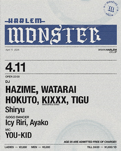 OPEN 22:00 LADIES ¥2,000 MEN ¥3,000