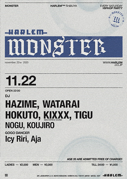 OPEN 22:00 LADIES ¥2,000 MEN ¥3,000