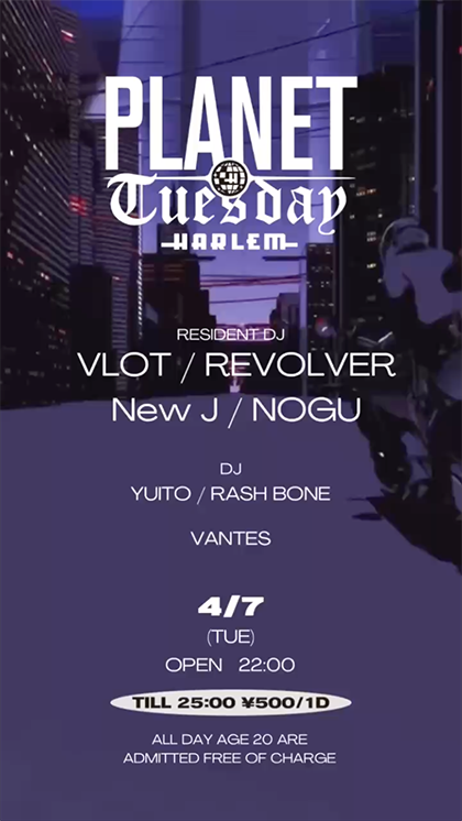 OPEN 22:00 LADIES ¥1,000/1D MEN ¥3,000/1D