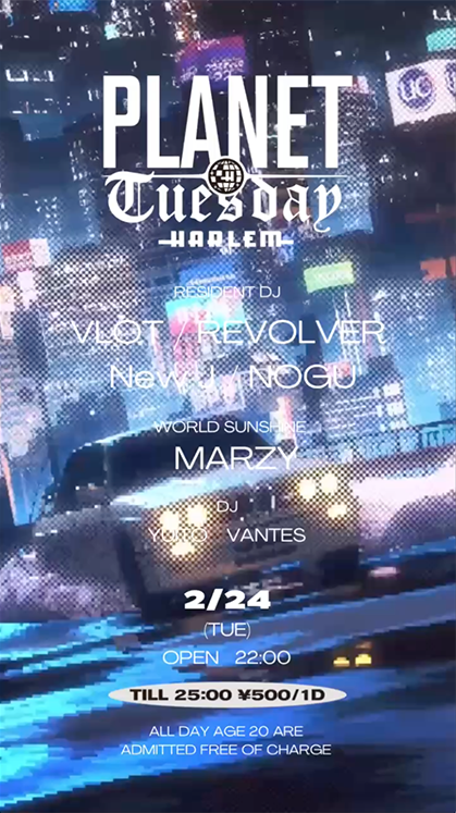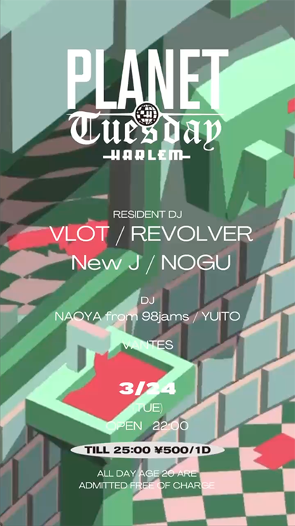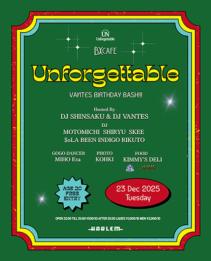 OPEN 22:00 LADIES ¥1,000/1D MEN ¥3,000/1D