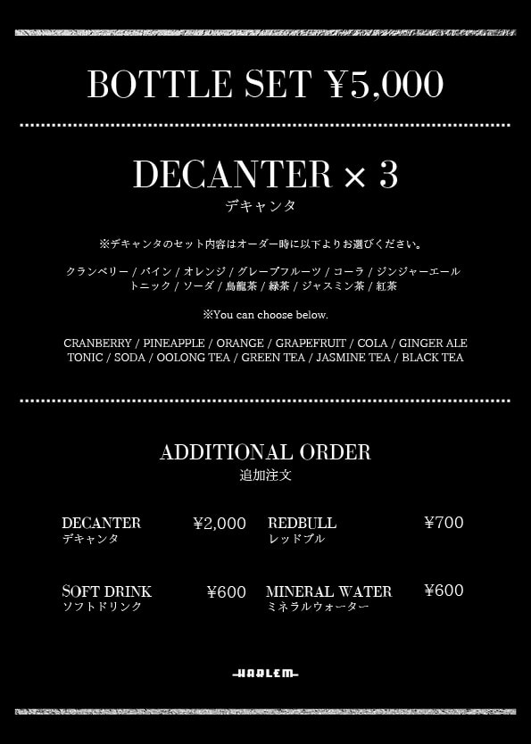 ・料金はボトル代など含むご利用料金となります。
