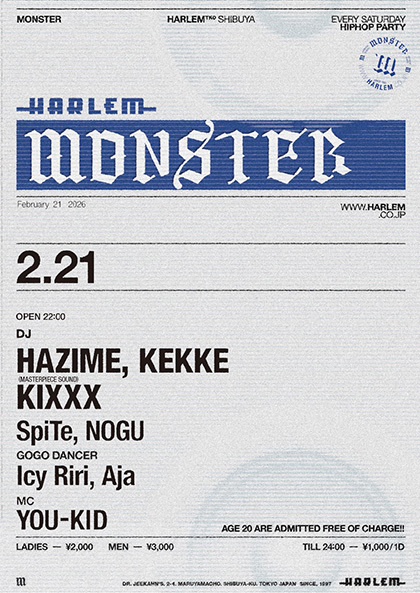 OPEN 22:00 LADIES ¥2,000 MEN ¥3,000