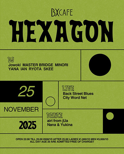 OPEN 22:00 LADIES ¥1,000/1D MEN ¥3,000/1D