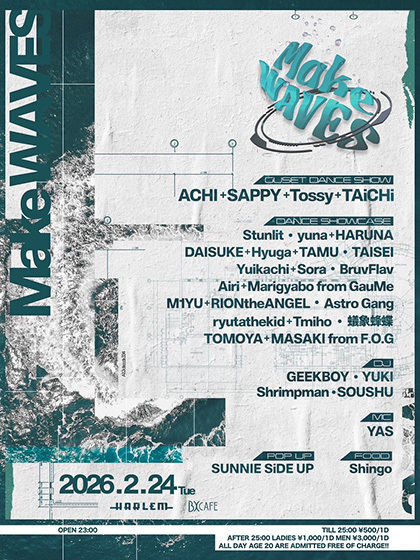 DANCE: Stunlit, yuna + HARUNA, DAISUKE + Hyuga + TAMU, TAISEI, Yuikachi + Sora, BruvFlav, Airi + Marigyabo from GauMe, MIYU + RION the ANGEL, Astro Gang, ryutathekid + Tmiho, 蟻象蜂蝶, TOMOYA + MASAKI from F.O.G