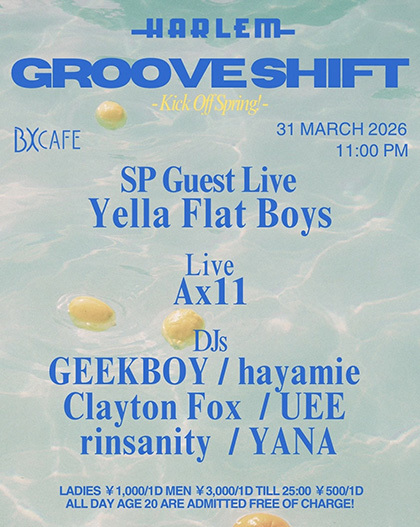 OPEN 22:00 LADIES ¥1,000/1D MEN ¥3,000/1D